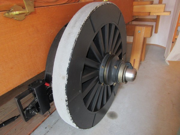 ブレーキは、後輪の外周鉄輪をバンド式ブレーキで押さえる方式が、制動も強力で放熱もよく長時間の使用にも安定します。